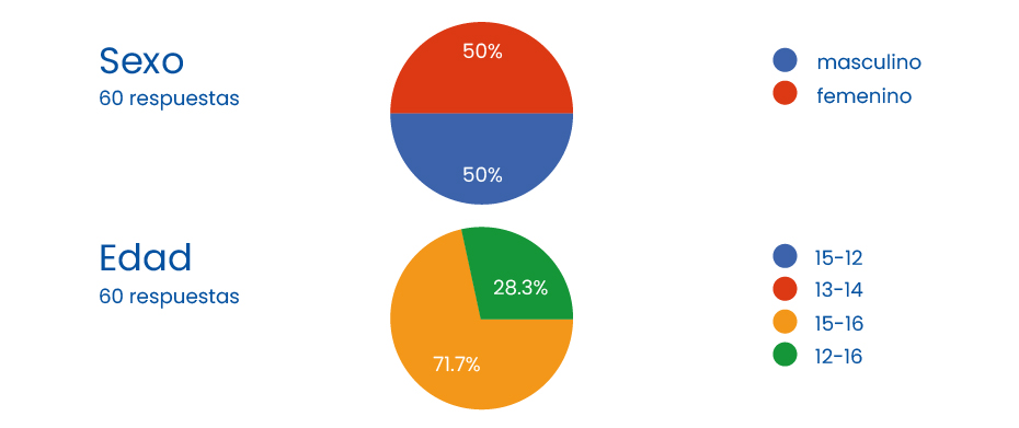 Mediante muestreo no probabilístico se seleccionaron 60 estudiantes, [29 varones (48.3%) y 31 mujeres (51.7%)]. El intervalo de sus edades varían entre 15-17 años [1 de 15 (1.7%), 44 de 16 (73.3%) y 15 de 17 (25%)]. (Media = 16.00).