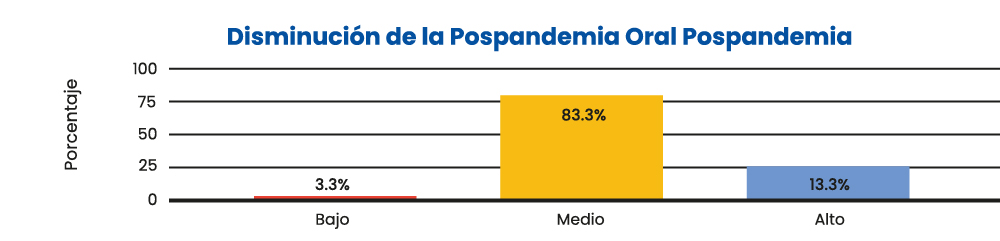 - El 83.3% percibe un nivel medio de disminución de la comunicación oral.