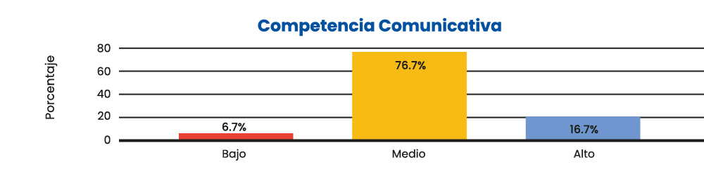 - El 76.7% demuestra un nivel medio de competencia comunicativa.