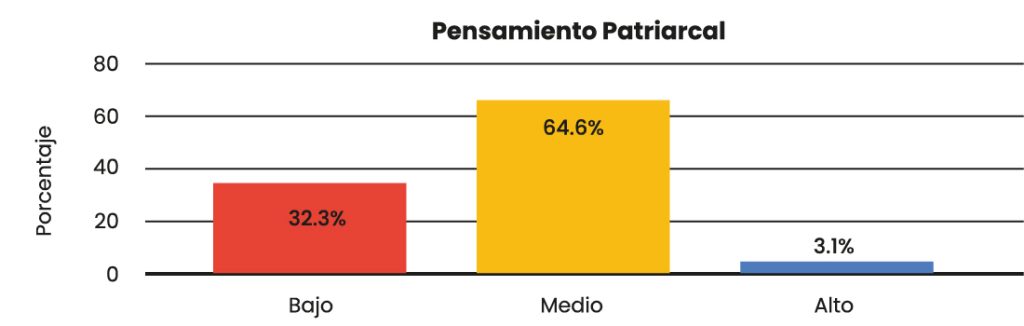 En el marco de la investigación realizada, se puede notar la presencia de pensamiento patriarcal en el entorno de los encuestados. Similares resultados se obtuvieron en estudios realizados en Arequipa y Lima. para el presente estudio, pese a que los estudiantes de secundaria evidencian diversidad de actitudes hacia el pensamiento patriarcal, sí han identificado una presencia marcada de este en sus familias y entorno. Al ser uno de estos ambientes su contexto escolar, cabe la reflexión y llamado a las autoridades a promover no solo la convivencia saludable, sino a generar espacios de análisis de los factores que generan una mala convivencia considerando entre ellos la ideología que dirige el actuar de los estudiantes.